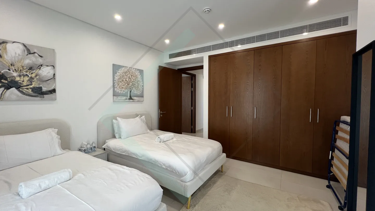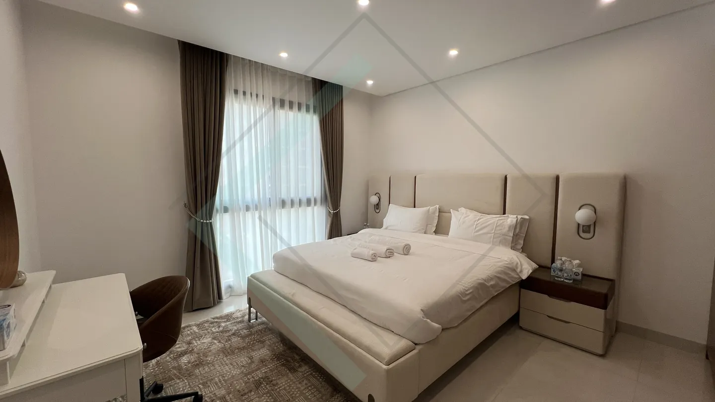 This beautifully furnished 2-bedroom apartment in Al Mouj Muscat offers a perfect blend of modern elegance and coastal charm. Relatively new and thoughtfully designed, the home features a spacious open-plan layout filled with natural light, complemented by high-end finishes and stylish décor. The fully equipped kitchen boasts premium appliances and sleek cabinetry, while both bedrooms offer plush furnishings and ample storage. Located in one of Muscat’s most sought-after waterfront communities, this apartment is ideal for professionals or small families seeking upscale living. Now available for rent and ready for immediate move-in.